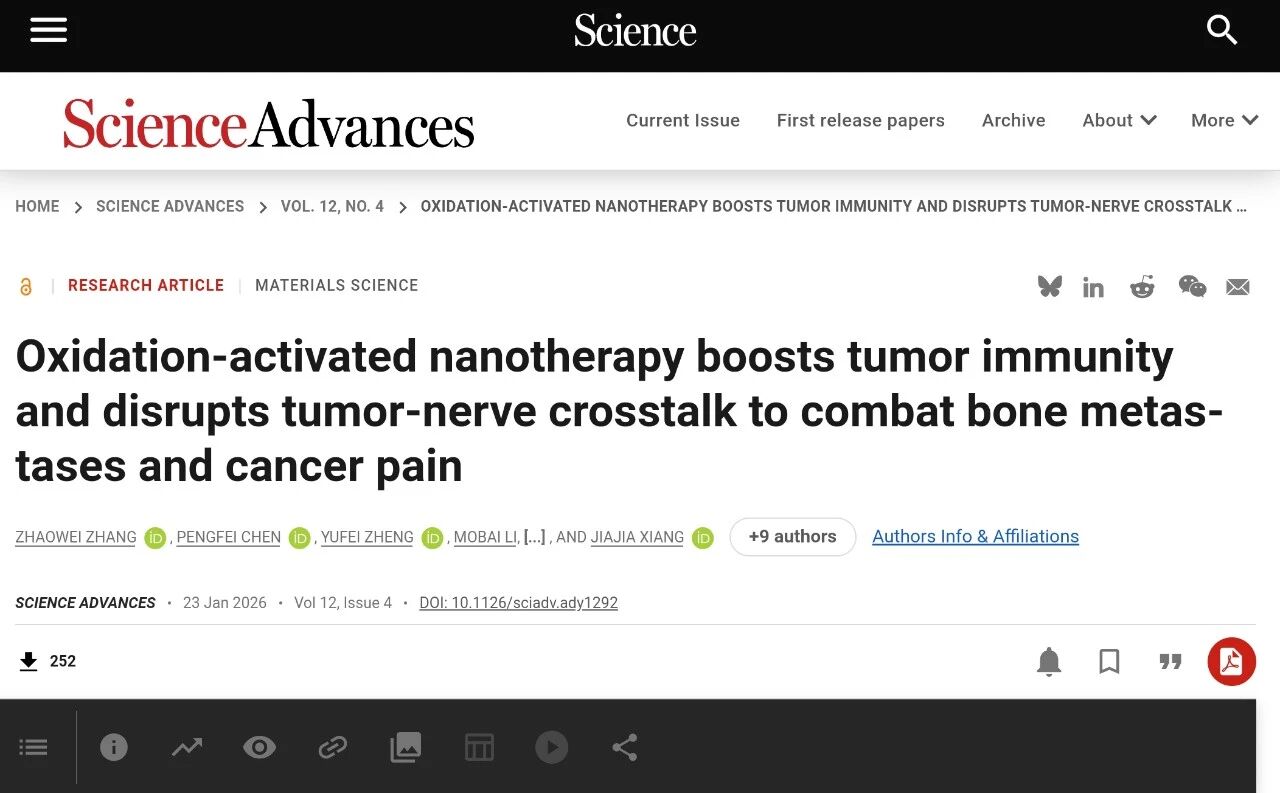 骨转移是肿瘤学领域尚未攻克的重要难题,其关键病理特征在于免疫抑制、神经性疼痛与骨溶解三者形成相互强化的复杂网络。当前的治疗手段仅能针对单一病理环节干预,无法对这些相互关联的病理生理轴线进行全面调控,亟需开发能够同步解决多重难题的创新治疗策略。