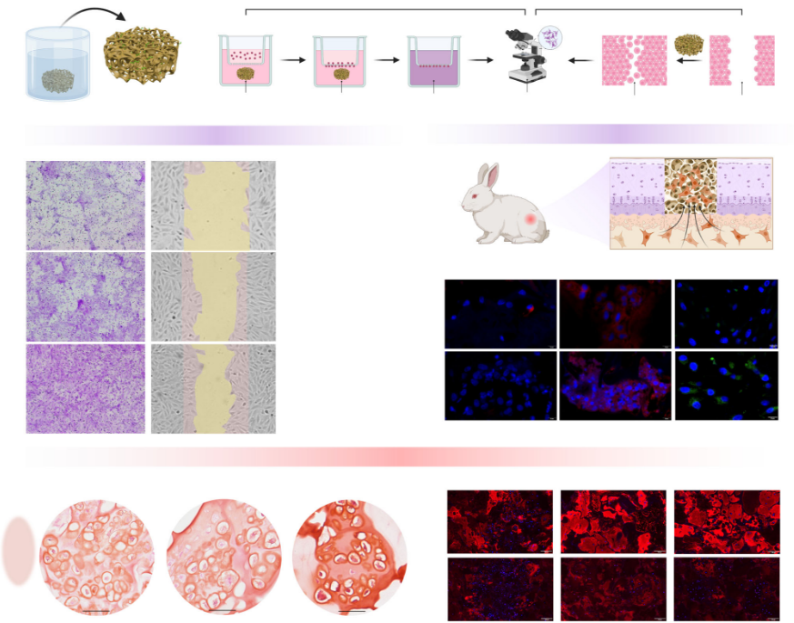 这项研究通过仿生天然软骨中胶原纤维限制蛋白聚糖的结构稳定机制,并结合活性多肽赋予材料生物学功能,成功开发出一种结构稳定、能主动激活内源性修复过程的人工软骨植入物。它不仅解决了传统仿生材料在体内易溶胀降解、稳定性差的问题,还避免了引入外源性细胞或生长因子带来的复杂性与风险,为临床微骨折术后实现高质量的软骨再生提供了一种具有潜力的新材料设计策略。