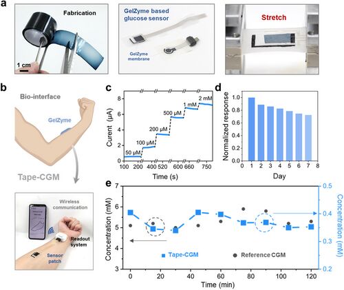 本文聚焦可穿戴式连续血糖监测仪合成水凝胶电极的皮肤相容性提升问题,基于合成生物学与生物电子学的融合发展背景,研究了通过合成生物电子策略开发酶促水凝胶电极(GelZymes)的相关技术,以突破传统酶电极在机械性能和界面稳定性上的固有限制,实现可穿戴设备与生命系统的无缝集成。相关文献发表于Advanced Science期刊。