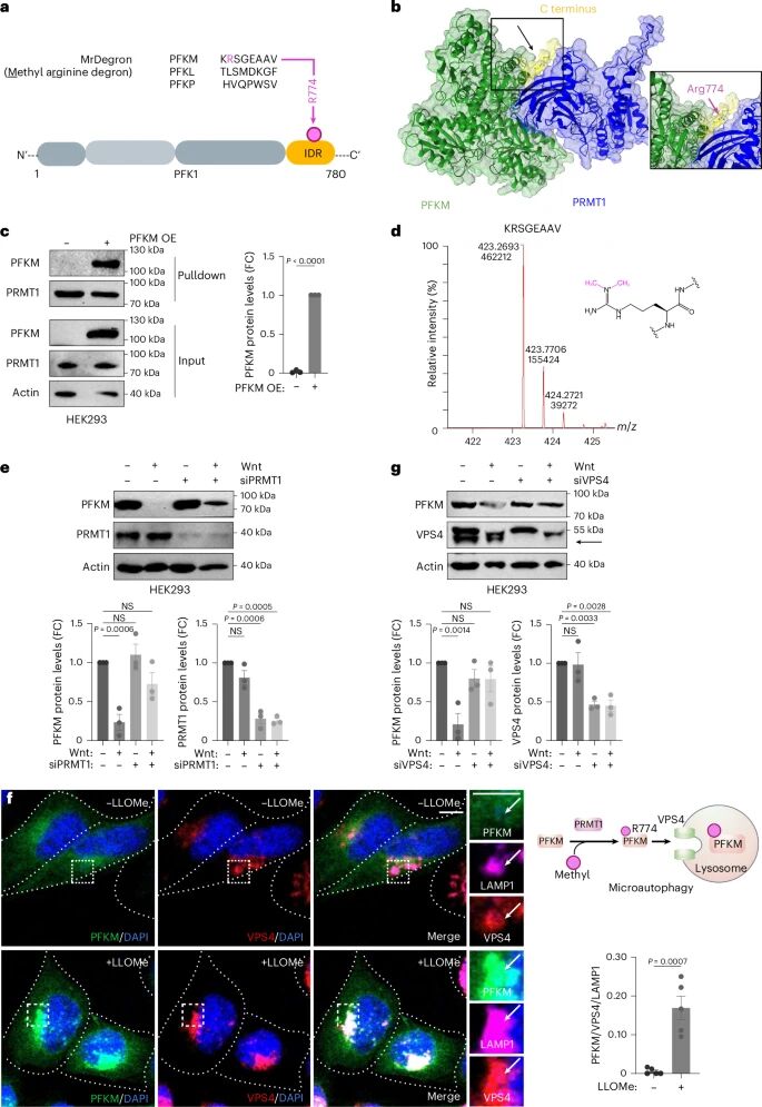 Wnt信号通过PRMT1对PFKM进行选择性甲基化,再经微自噬介导其溶酶体降解;