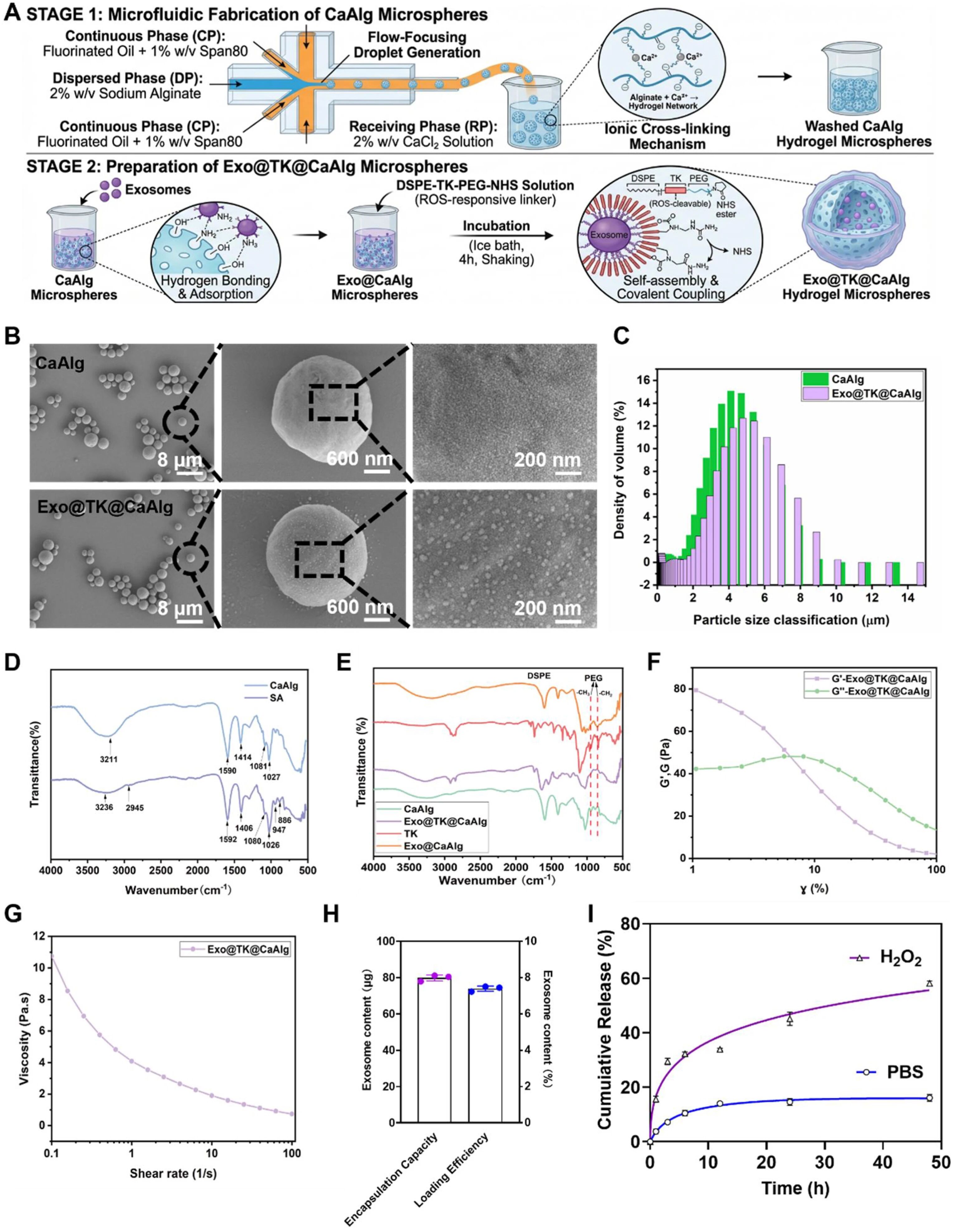 Exo@TK@CaAlg水凝胶微球,由硫磷键修饰的钙藻酸盐基质构成,装载人类脐带间充质干细胞来源的外泌体。