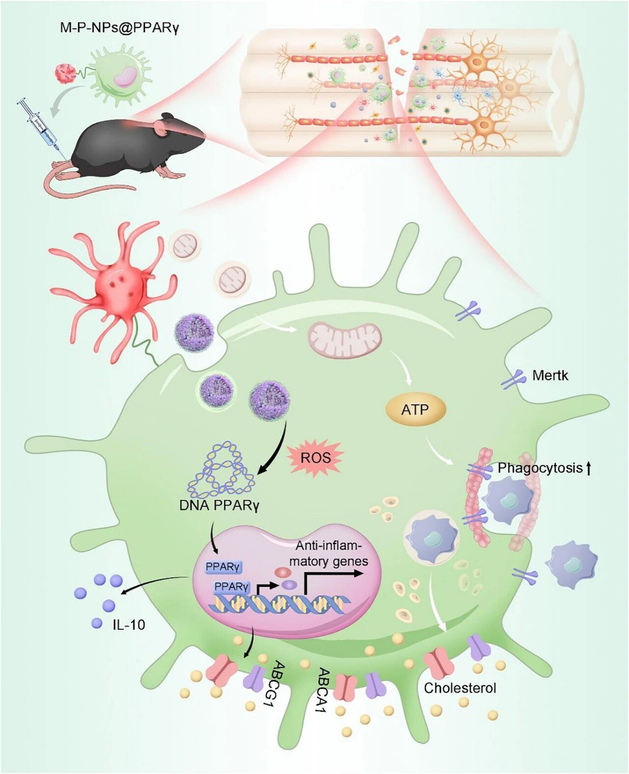 2. 研究创新性地构建了“血小板-巨噬细胞”偶联递送系统,将线粒体转移与基因纳米颗粒(NPs)递送相结合,实现了对巨噬细胞能量代谢(ATP生成)与脂质代谢(PPARγ调控)的双重协同调控,从多维度纠正胞葬功能障碍。