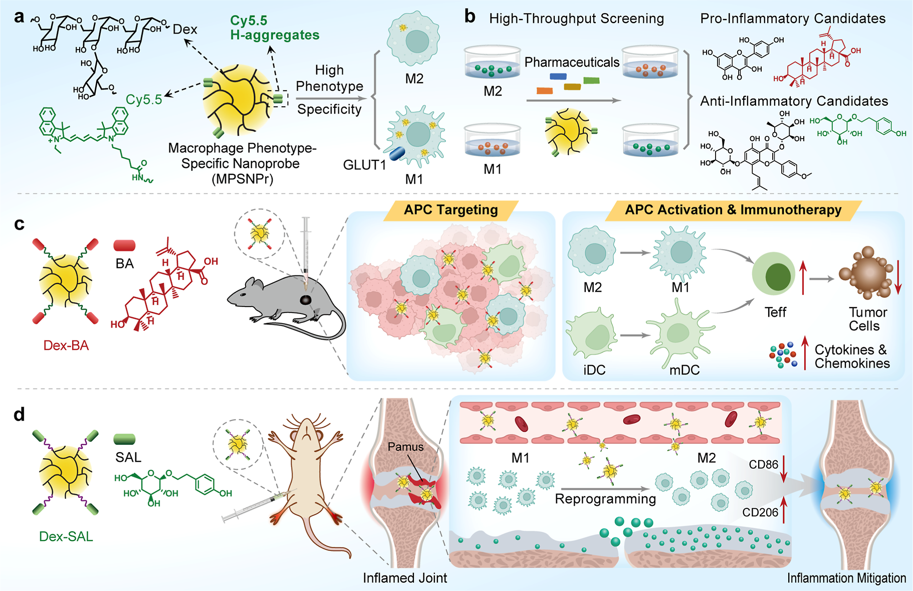 IF 16!通过表型特异性纳米探针辅助表型筛选改造的多糖纳米佐剂重编程巨噬细胞功能,用于癌症和类风湿性关节炎治疗