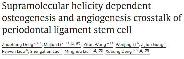 Bioactive Materials | 牙周韧带干细胞的超分子螺旋性依赖性骨生成与血管生成交叉作用