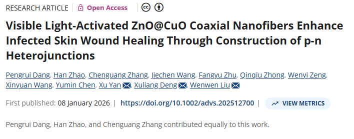 Advanced Science | 可见光激活 ZnO@CuO 同轴纳米纤维通过构建 p-n 异质连接促进感染皮肤伤口愈合
