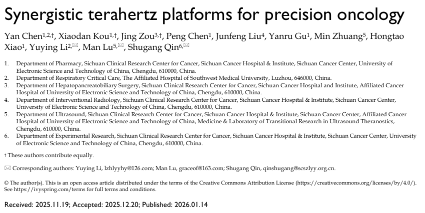 该研究以题为“Synergistic terahertz platforms for precision oncology.”发表在Theranostics上。