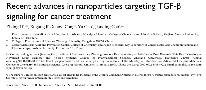 该研究以题为“Recent advances in nanoparticles targeting TGF-β signaling for cancer treatment.”发表在Theranostics 上。