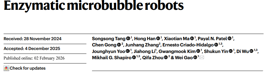 该研究以题为“Enzymatic microbubble robots”发表在Nature Nanotechnology上。