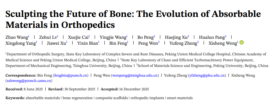 该研究以题为“Sculpting the Future of Bone: The Evolution of Absorbable Materials in Orthopedics”发表在Advanced Materials上。