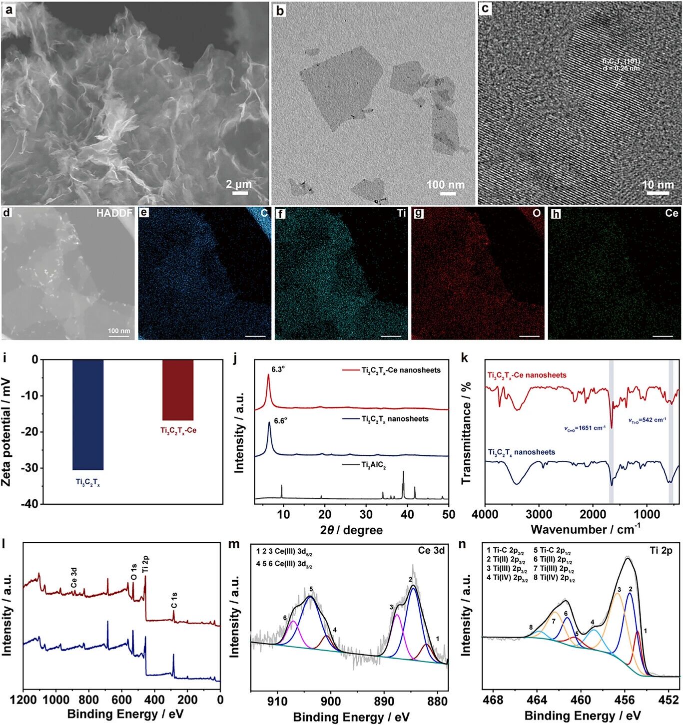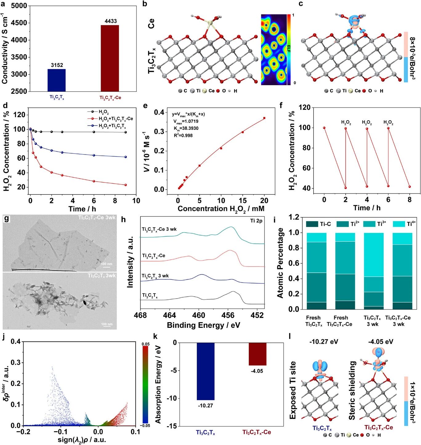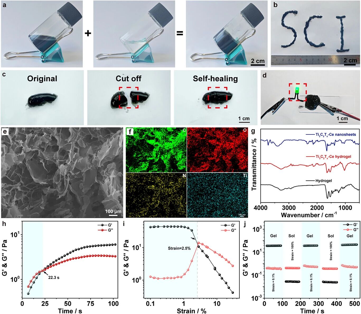 Based on two-dimensional transition metal carbide Ti₃C₂Tₓ (MXene) nanosheets, a Ti₃C₂Tₓ-Ce composite nanosheet was constructed through cerium ion intercalation modification, and further combined with a polymer matrix to form an injectable conductive hydrogel.